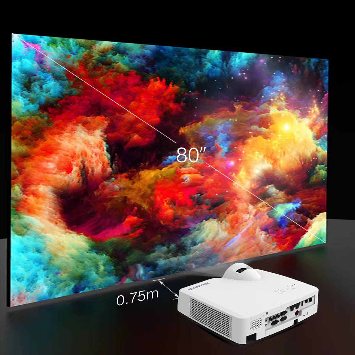 يتميز هذا البروجيكتور بقصر مسافة الإسقاط، حيث يمكنه عرض صورة بقياس 80 بوصة من مسافة 0.75 متر فقط، مع نسبة تباين تبلغ 1:12000 لعرض صور واضحة وتفاصيل دقيقة.
